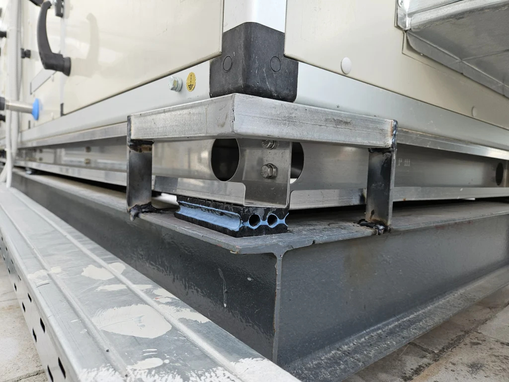 Kun ilmanvaihtokone asennetaan tärinäneristimien päälle, suora mekaaninen kosketus katkeaa. Värähtely ei siirry rakenteeseen ja runkoääni vähenee merkittävästi.