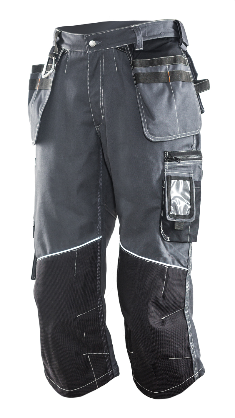 Laadukkaalla rengaskehrätyllä puuvilla/polyesterillä on polyesterin vahvuus ja puuvillan mukavuus, joten vaate kestää hyvin kulutusta ja on miellyttävä päällä. Sisäänommellut etutaskut. Sisäänommellut etutaskut. Vahvistetut riipputaskut lisälokeroilla ja ripsinauha työkaluille. Puhelintasku lonkan kohdalla ja karbiinihaka edessä. Vahvistetut takataskut. Tuumamittatasku puukkonapilla. Vasemmassa reisitaskussa vetoketju ja henkilökortti-, puhelin- ja työkalulokero. Polvista taivutetut lahkeet, joissa kulutusta kestävät polvitaskut DuPont™Kevlar®. Polvisuojat voidaan asettaa kahteen eri korkeuteen. Heijastintereet polvien kohdalla.