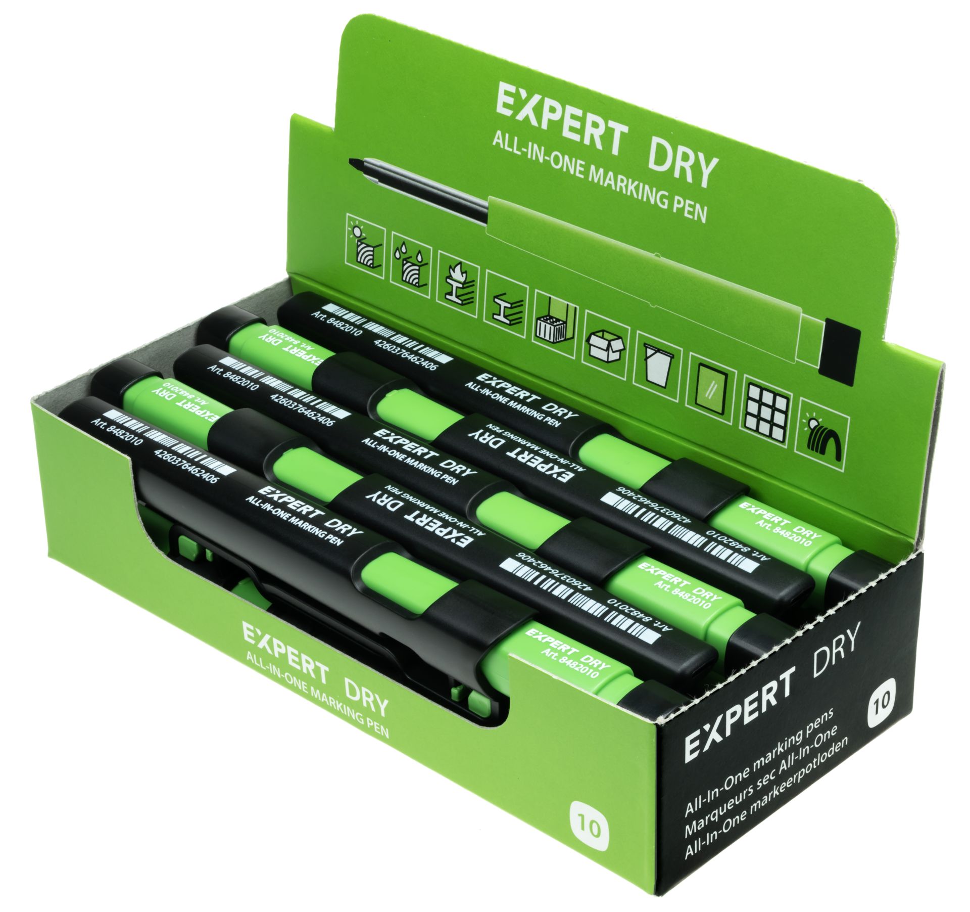 Merkkauskynä Expert Dry all-in-one ominaisuudet