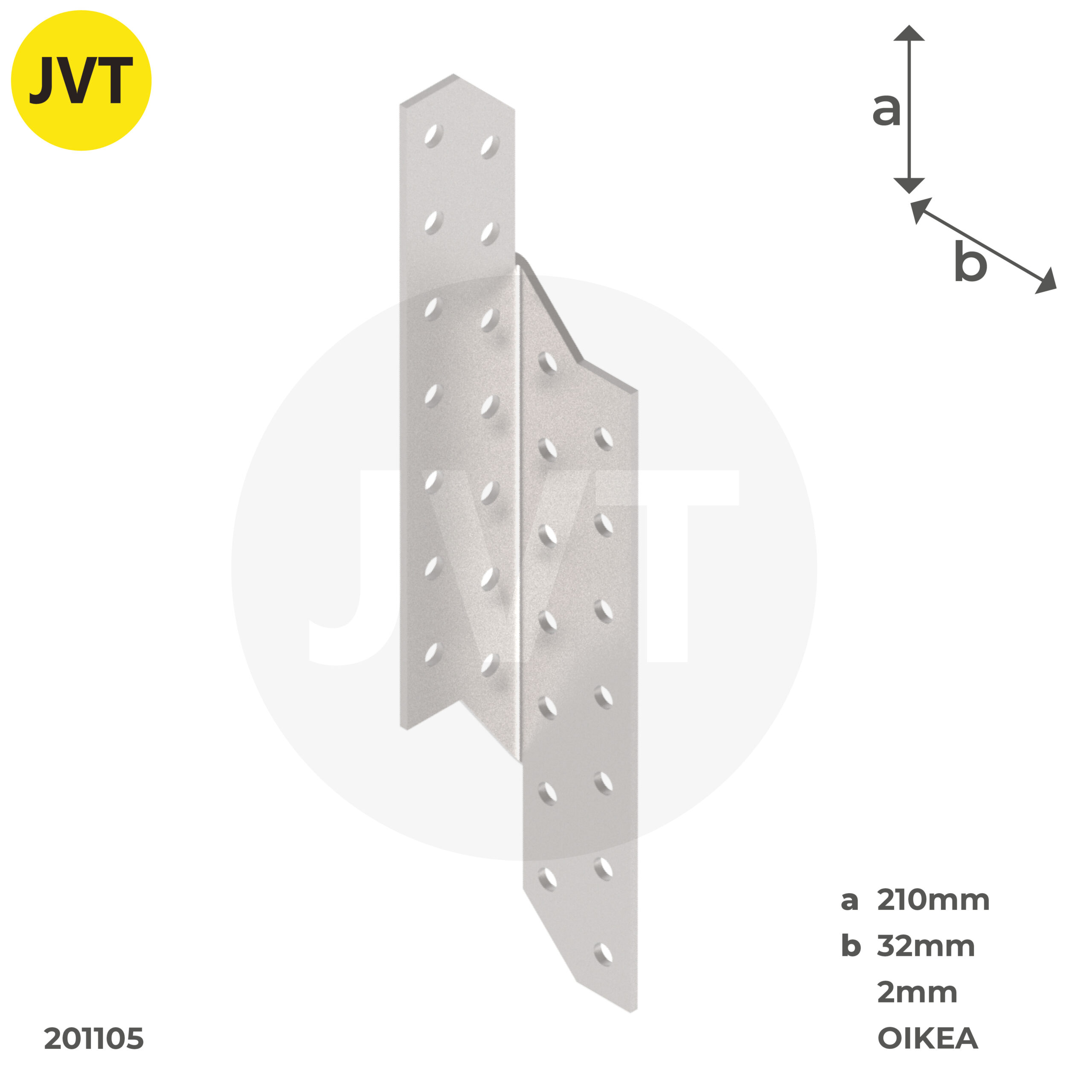 JVT Fasteners kannatuslevy 210 pari (vasen ja oikea) on CE-merkitty kiinnityslevy, jota käytetään puuliitoksissa, vesikaton harjarakenteissa, sekä ristikkopalkkien asentamisessa. Kannatyslevy 210 käytetään aina pareittain, asentamalla vasemmanpuoleinen ja oikeanpuoleinen levy samaan puuliitokseen.