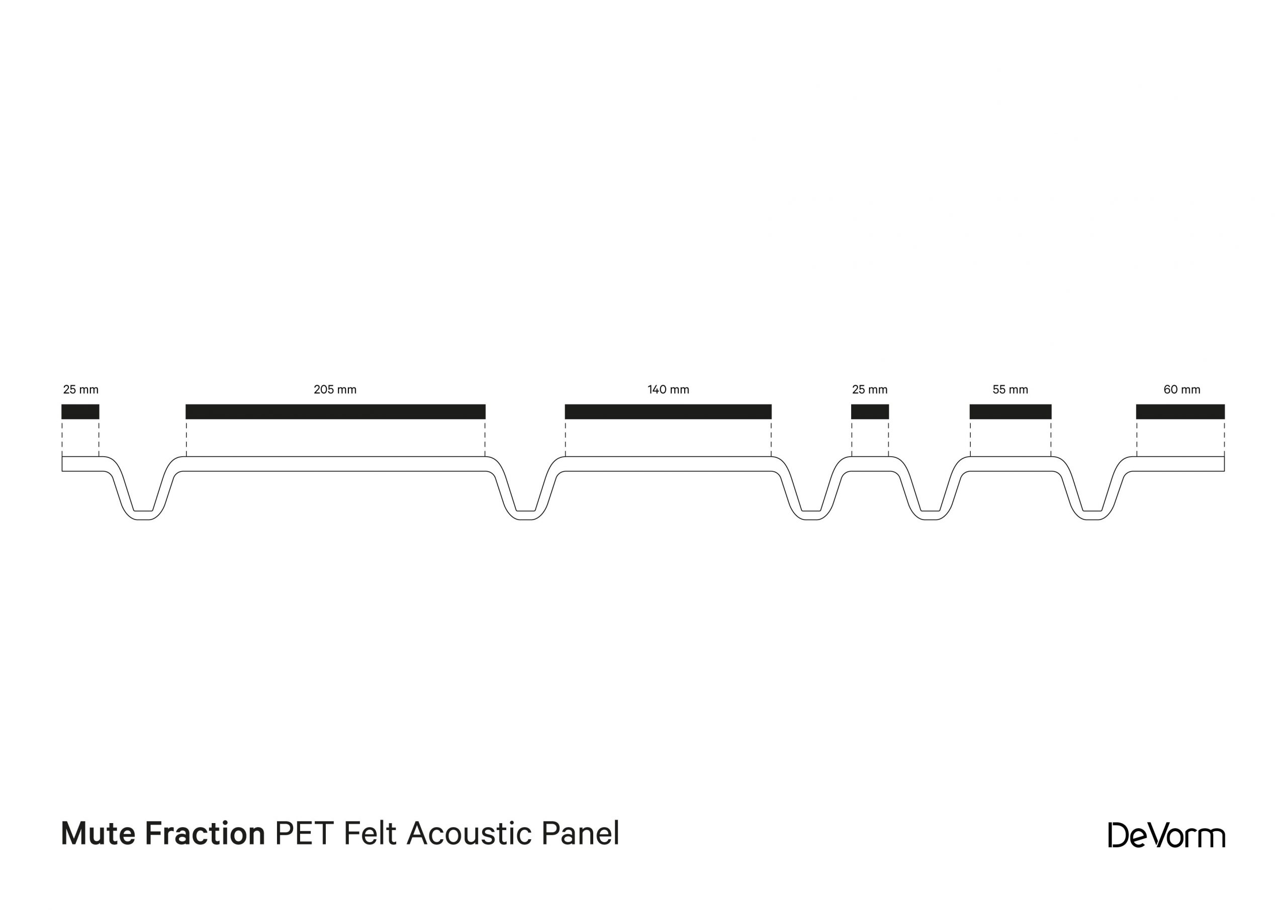 Mute Fraction PET Felt akustiikkapaneeli De Vorm syntyi arkkitehtonisia mittasuhteita koskevien tutkimusten inspiroimana ja se tarjoaa tasapainoisen muotoilun riippumatta siitä, missä ja miten sitä käytetään. Epäsäännöllisen kuvion ansiosta se voidaan jakaa erikokoisiin segmentteihin ja muokata sopivaksi mille tahansa pinnalle. Mute Fraction akustiikkapaneelit voidaan asentaa sekä vaaka- että pystyasentoon ja ne tuovat erinomaista estetiikkaa ja akustiikkaa mihin tahansa tilaan.