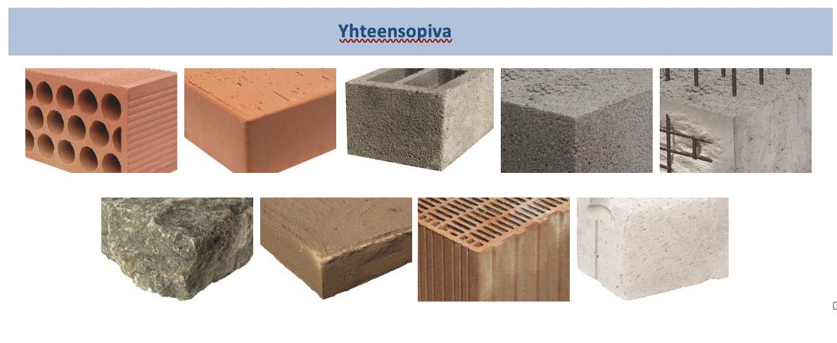 Palouretaani tarttuu hyvin useimpiin rakennusmateriaaleihin, kuten: