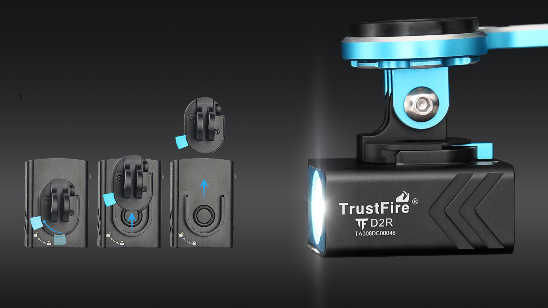 Polkupyörän valo Trustfire D2R:n valokeila on erittäin leveä 155 astetta, joten pimeitä kohtia ei näkökenttään jää. Pienellä valoteholla tai strobo toiminnossa valaisin toimii erinomaisena huomiovalona liikenteen seassa liikuttaessa, ja pimeälle tieosuudelle tai maastoon saavuttaessa täysi teho 450 lumenia varmistaa, että huono näkyvyys ei ole esteenä. Ladattava pyörän valo on erittäin helppo irroittaa telineestä pikakiinnityksen ansiosta.