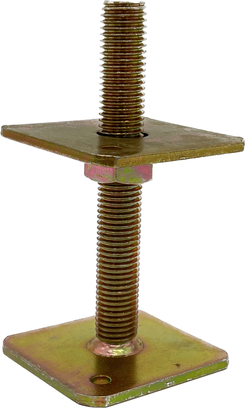 Säätöjalka 80×80 mm korkeus 150 mm M20 JVT Fasteners on hirsirakentamisessa käytetty puupilarien alle ja betoniin kiinnitettävä säädettävä kiinnike. Käytetään hirsin pystypilareiden painumavaran säätämiseen, sekä pilarin tai kantavan hirsipalkin muurauksen liitoksissa. Hyvä yleiskäyttöön ja keskiraskaille kuormille, esim. katoksen rakenteisiin.